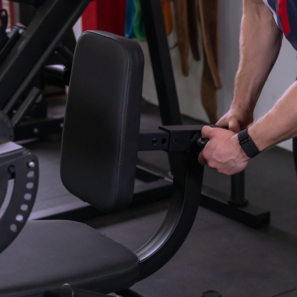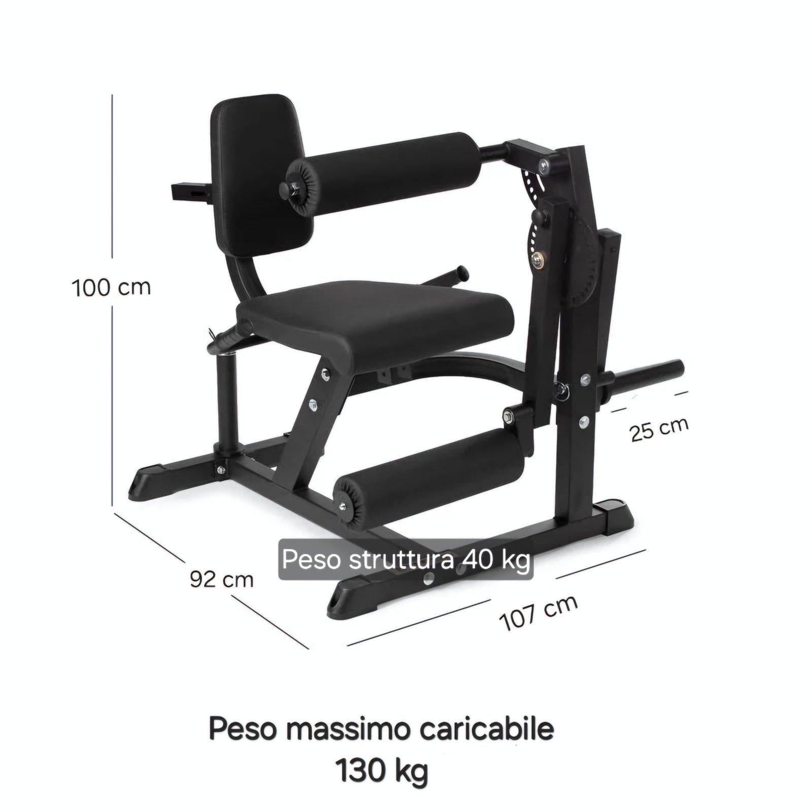 – Il design regolabile del cuscinetto per le cosce rende l’utilizzo più comodo rispetto alle altre leg extension dove va tolto e riposizionato.